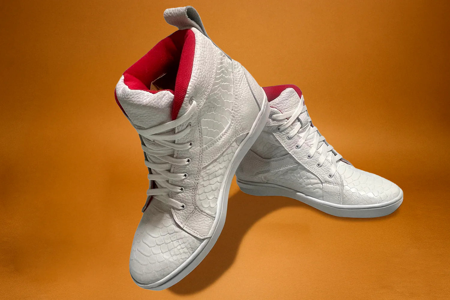 Piel grabada pitón, forro rojo y suela signature. Hechos en México para conquistar la jungla urbana.